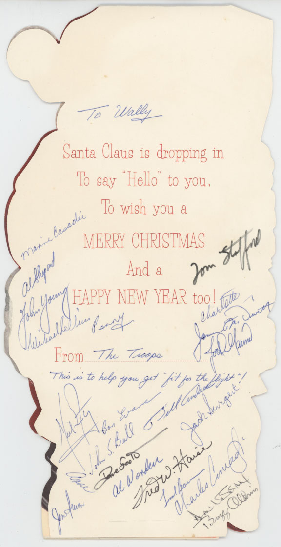 Hand signed and dedicated to Wally Schirra by John Galvin
